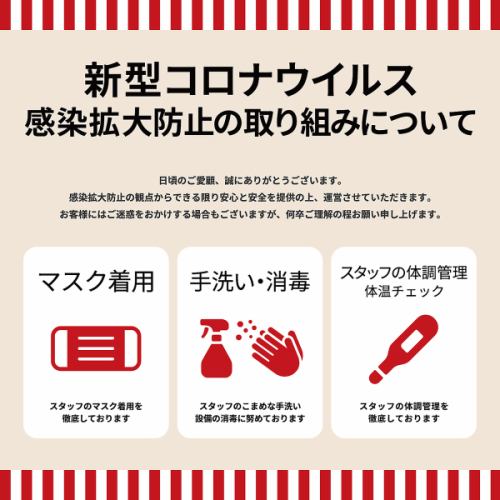 日頃のご愛顧、誠にありがとうございます。 感染拡大防止の観点からできる限り安心と安全を提供の上、運営させていただきます。 お客様にはご迷惑をおかけする場合もございますが、何卒ご理解の程お願い申し上げます。