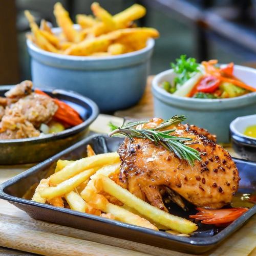 厳選された肉と新鮮な野菜を、炭火の炎で丁寧に焼き上げます。その瞬間に放たれる香ばしい煙が、食材本来の風味を際立たせ、外はパリッと、内はジューシーな絶品グリルを実現。